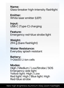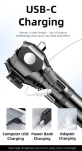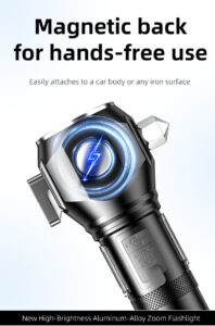 HunterTac W405 Multifunctional High Brightness Zoomable Flashlight – Outdoor Adventure, Self-Defense & Car Use