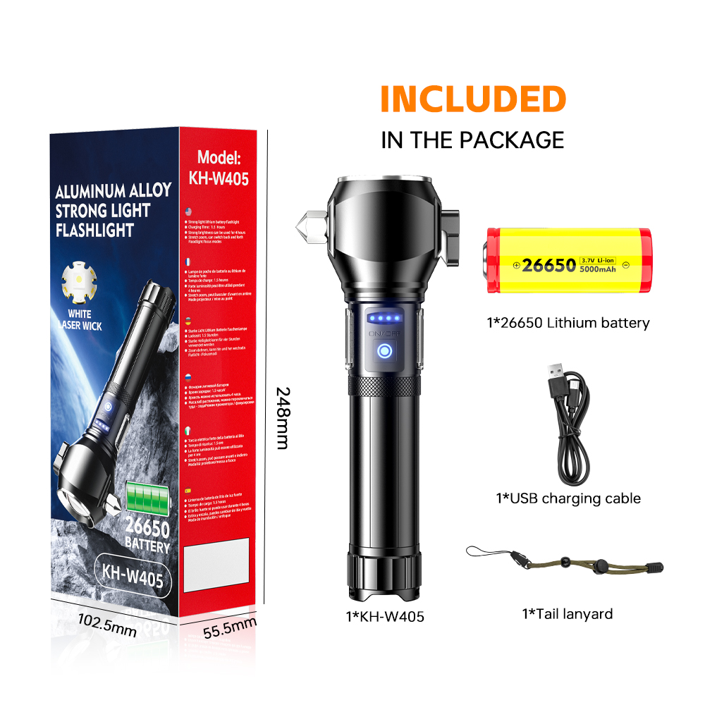 HunterTac W405 Multifunctional High Brightness Zoomable Flashlight – Outdoor Adventure, Self-Defense & Car Use