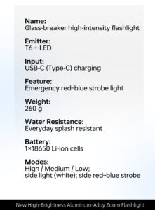 HunterTac T01 Multifunctional Emergency Flashlight – Car Use, Rescue & Repair Tool, Fire Department Special